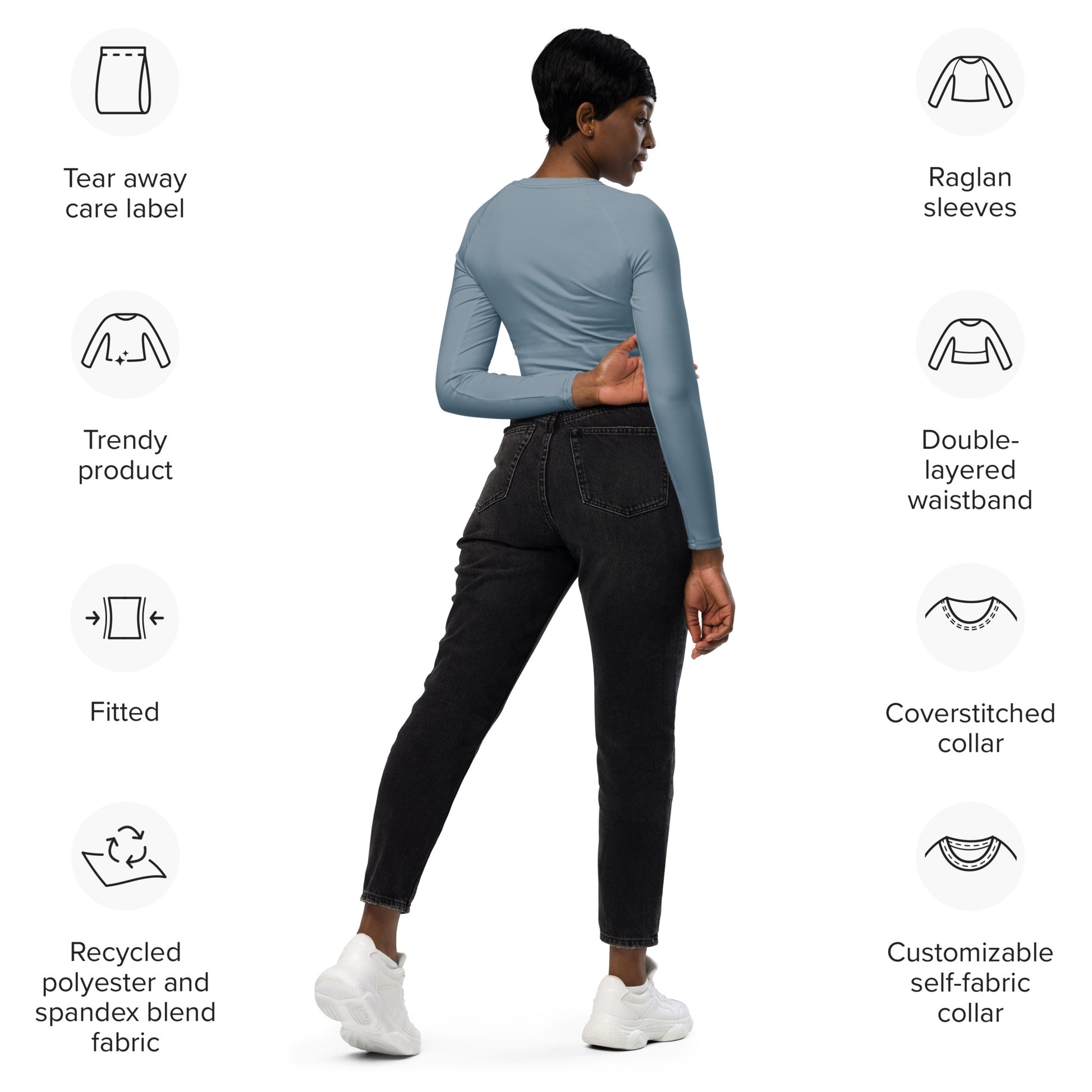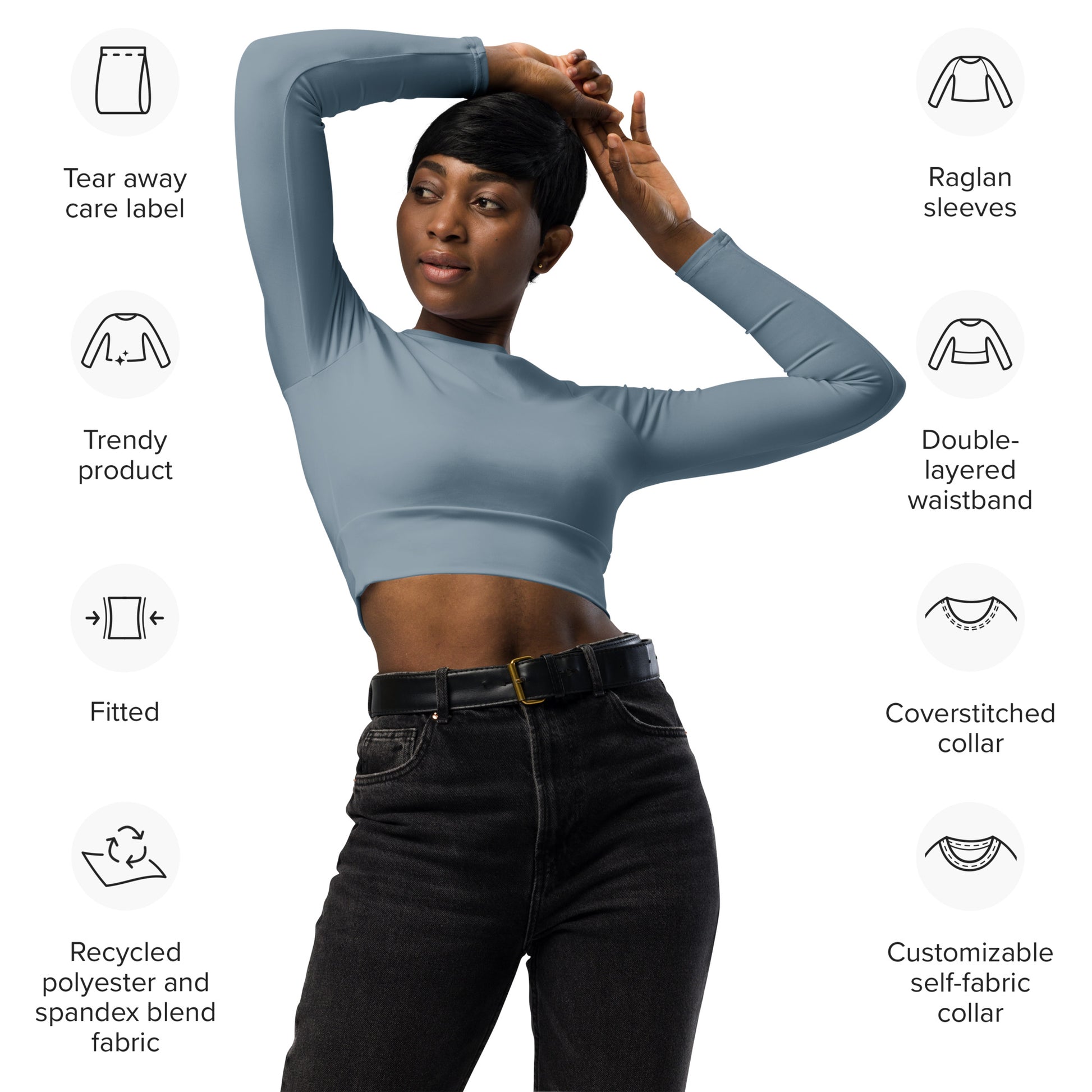 This long sleeve crop top is made especially for you. When your order is placed we begin the fabrication of each product, which is why it takes us a bit longer to deliver it to you. Making products on demand instead of in bulk helps reduce overproduction, and waste. We thank you for making this thoughtful purchasing decision!