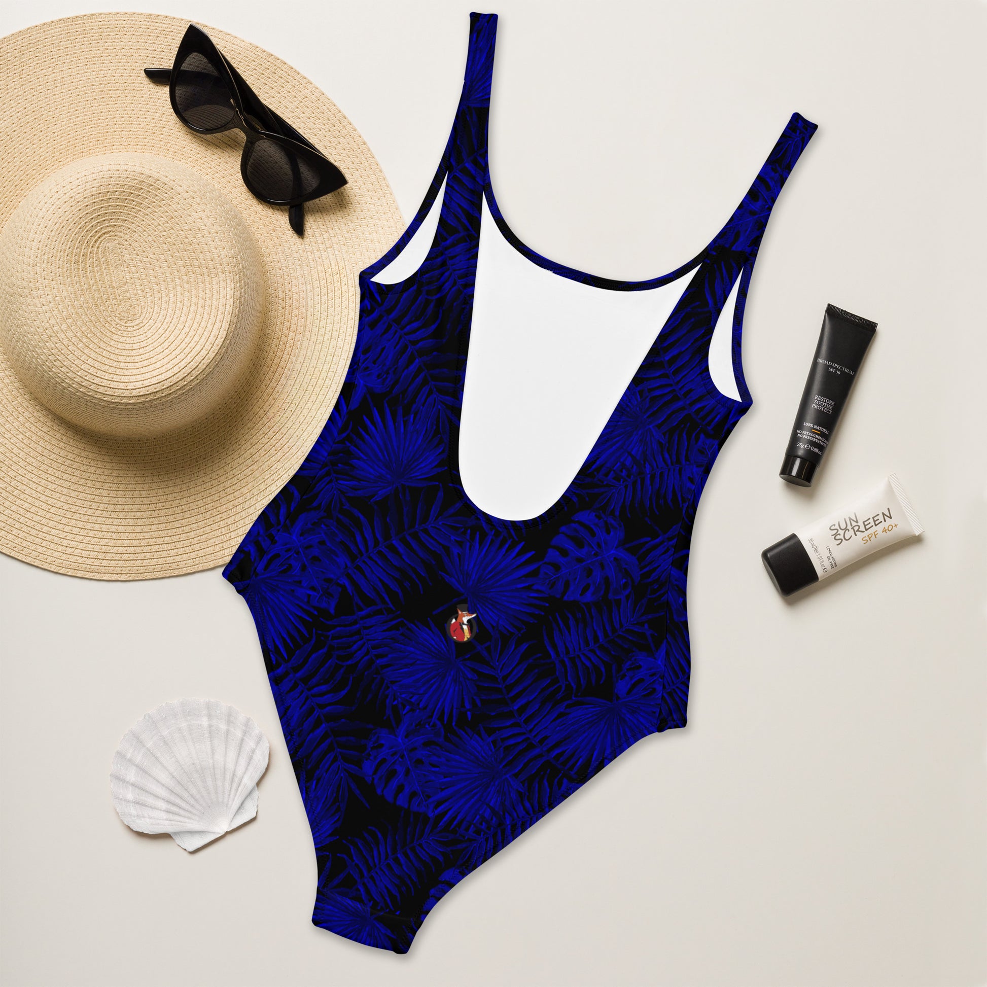 Snooty Fox Art One-Piece Swimsuit - Dark Blue Palm Pattern