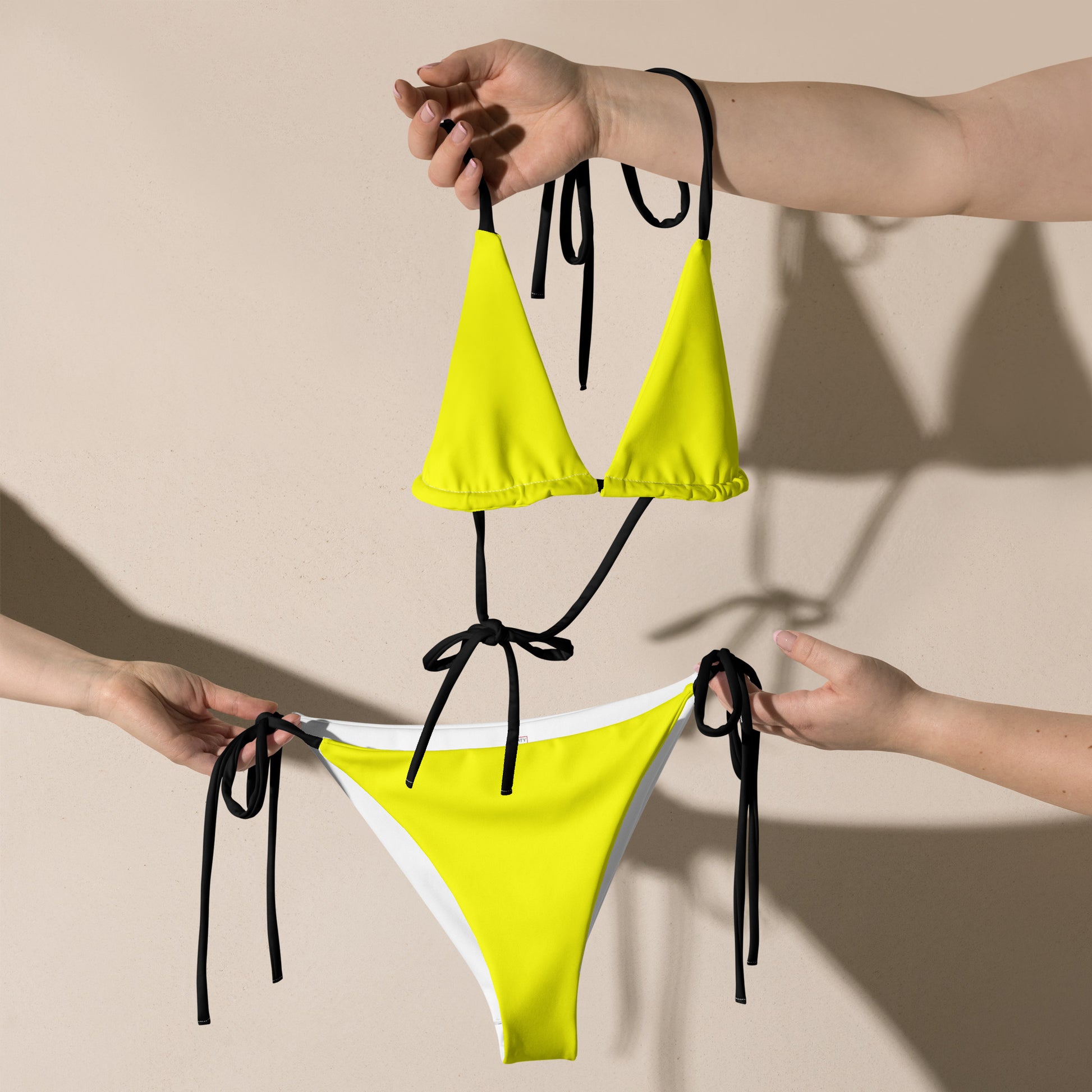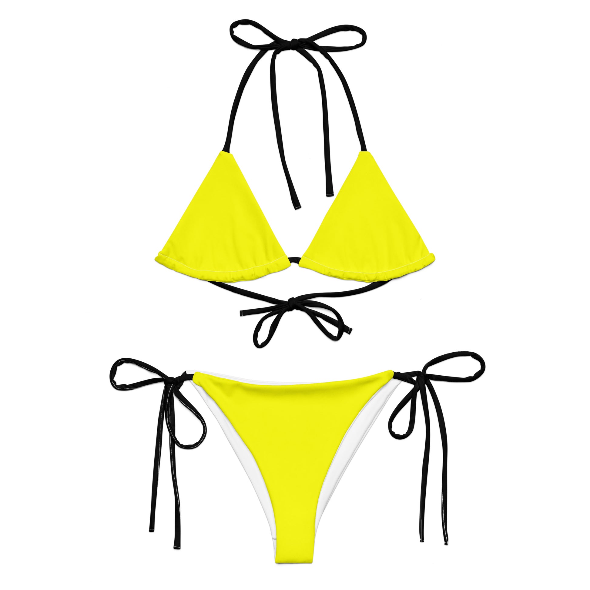 Disclaimer: To make your All-Over Print Recycled String Bikini last longer, thoroughly rinse it off after each use and get rid of any chlorine/salt residue.