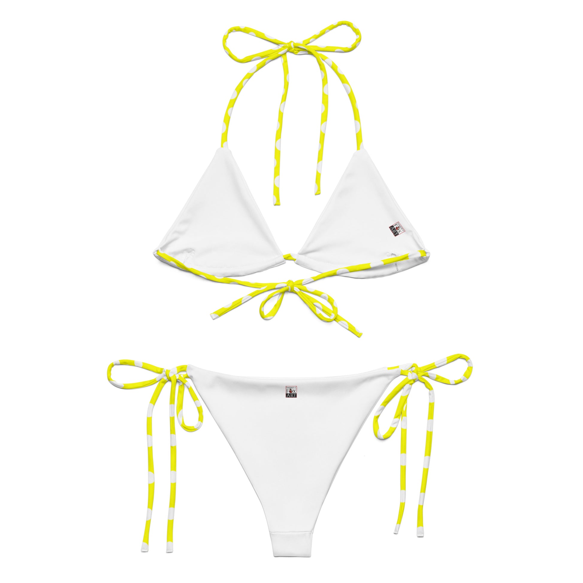 Snooty Fox Art String Bikini - White Polka Dots on Safety Yellow