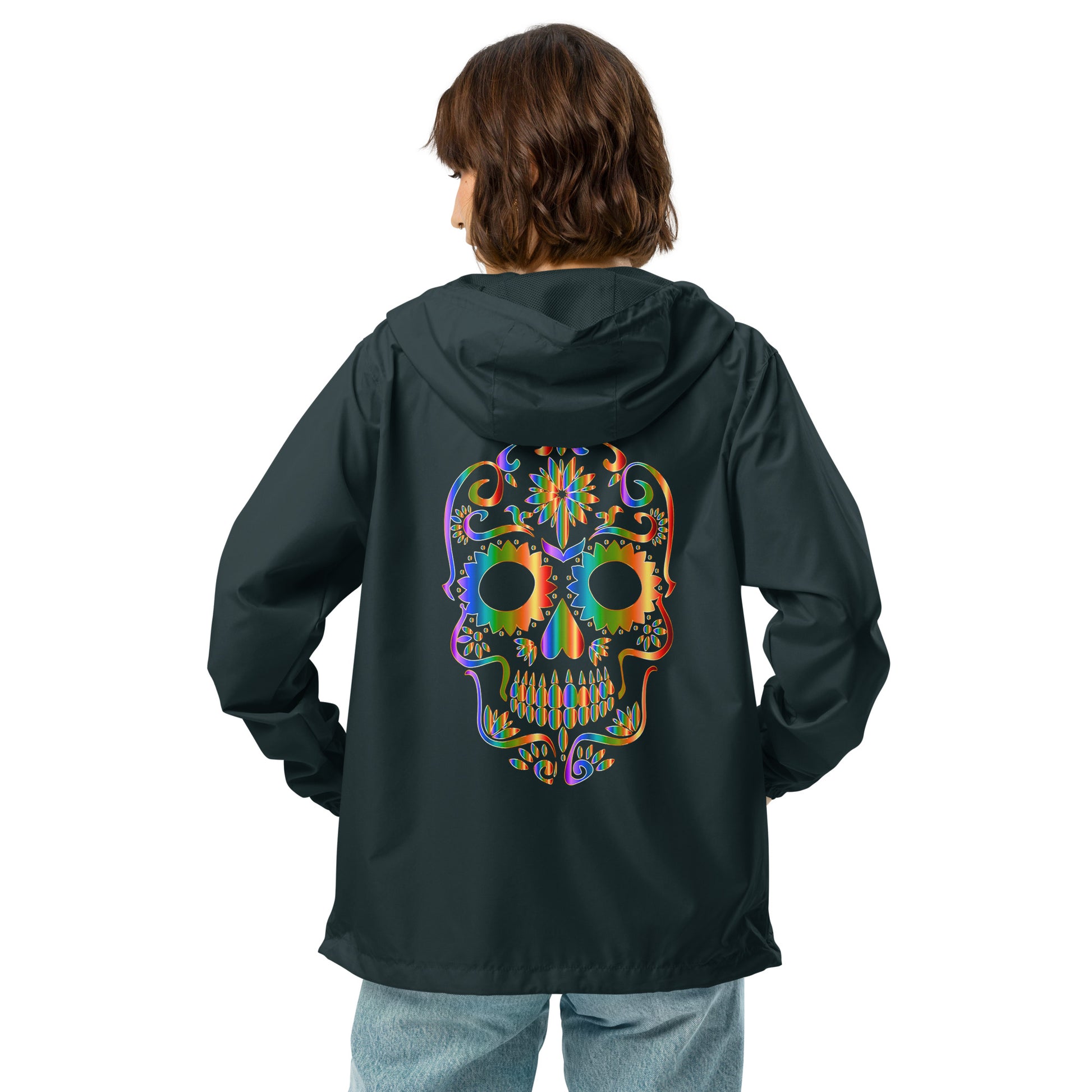 Snooty Fox Art Unisex Lightweight Zip Up Windbreaker - Day of the Dead Skull