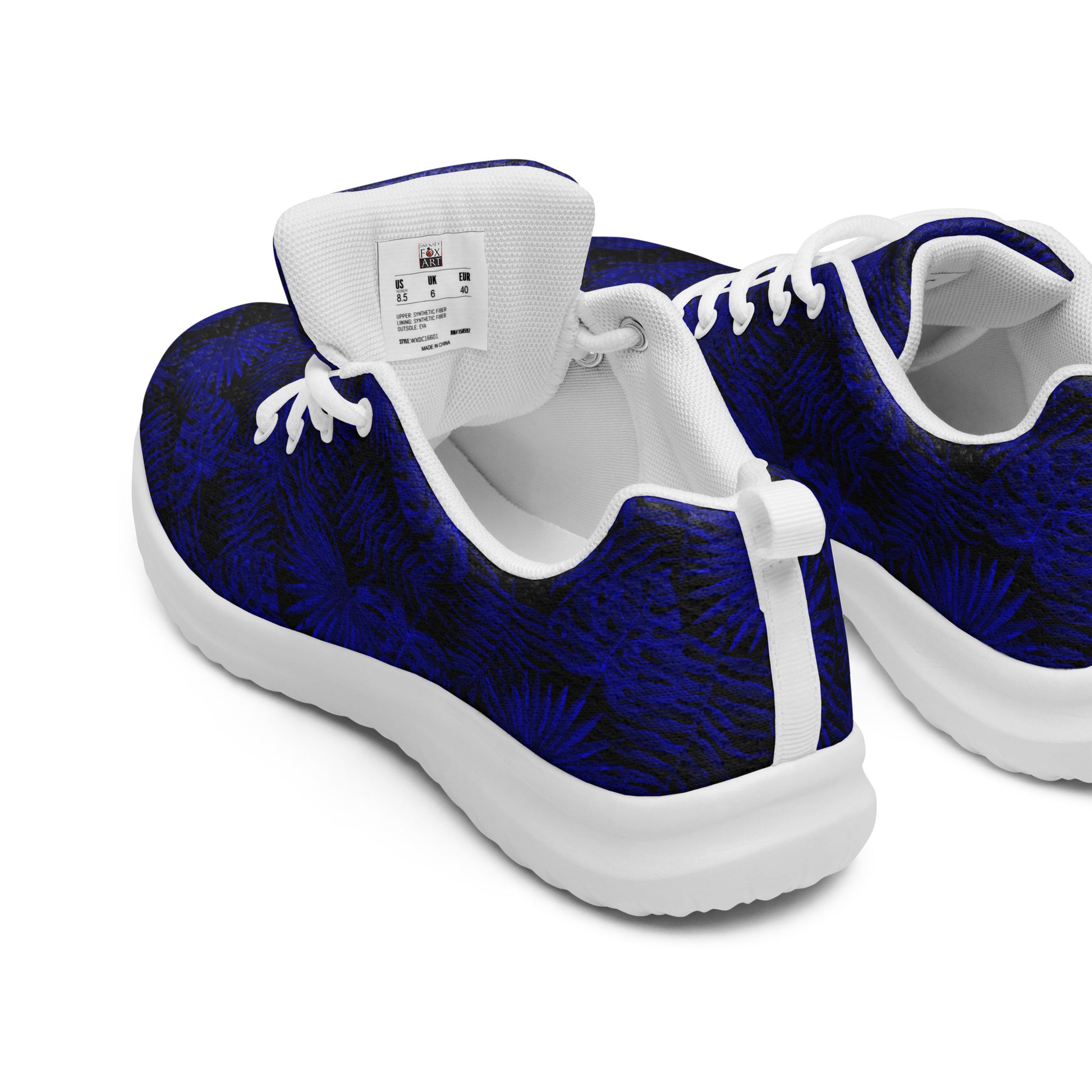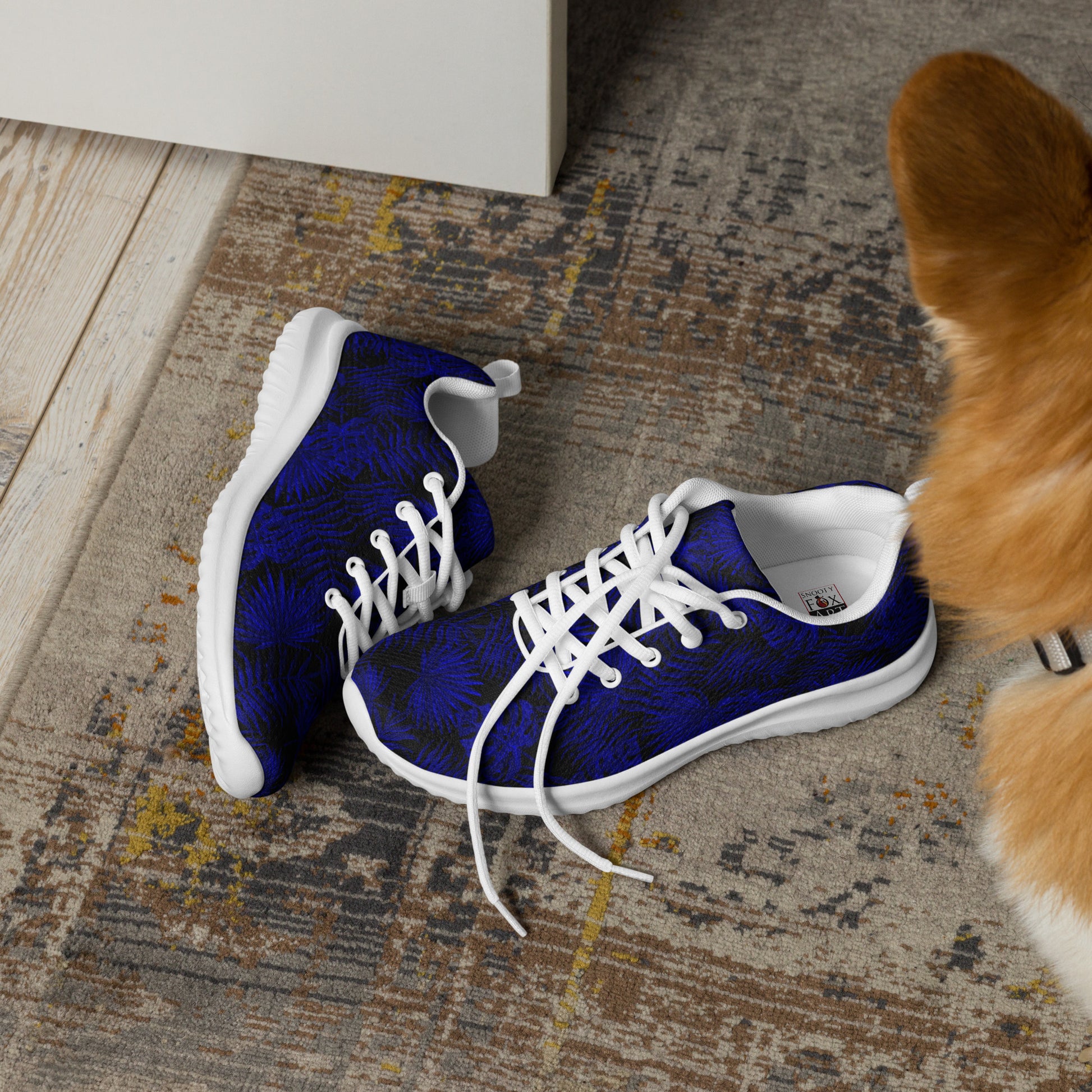 Snooty Fox Art Women’s Athletic Shoes - Dark Blue Palm Pattern