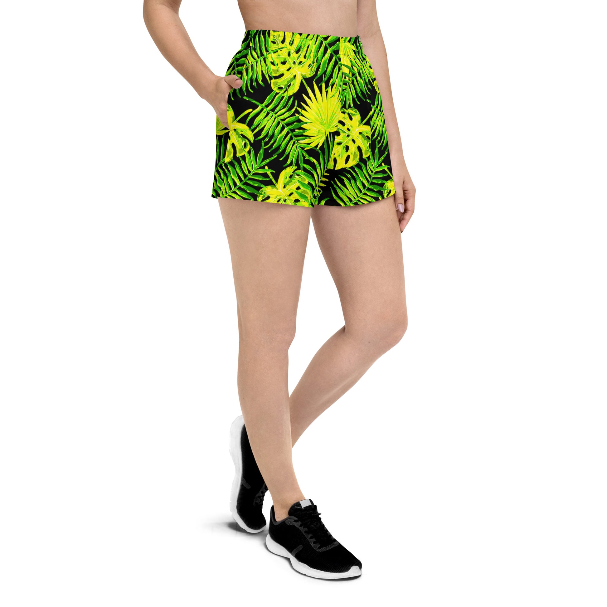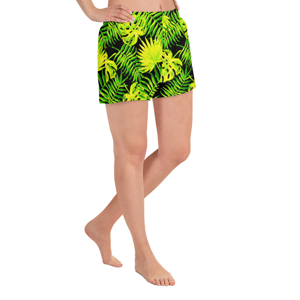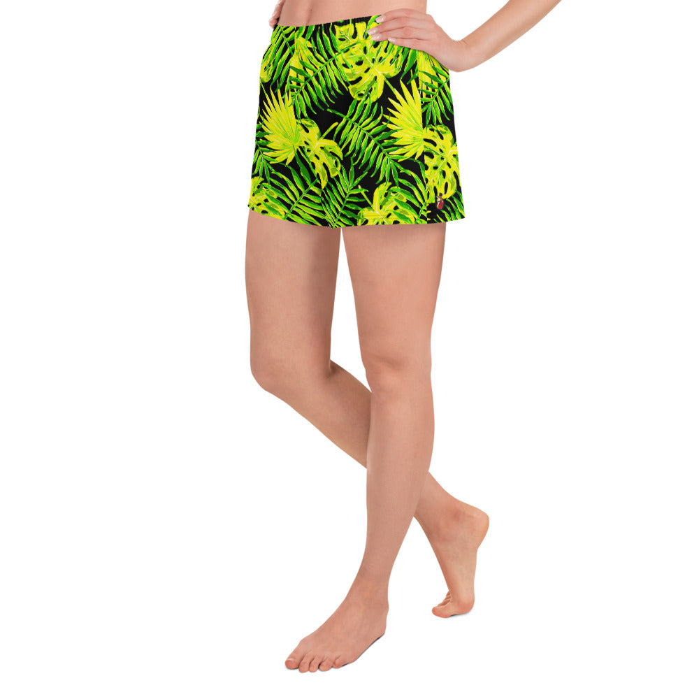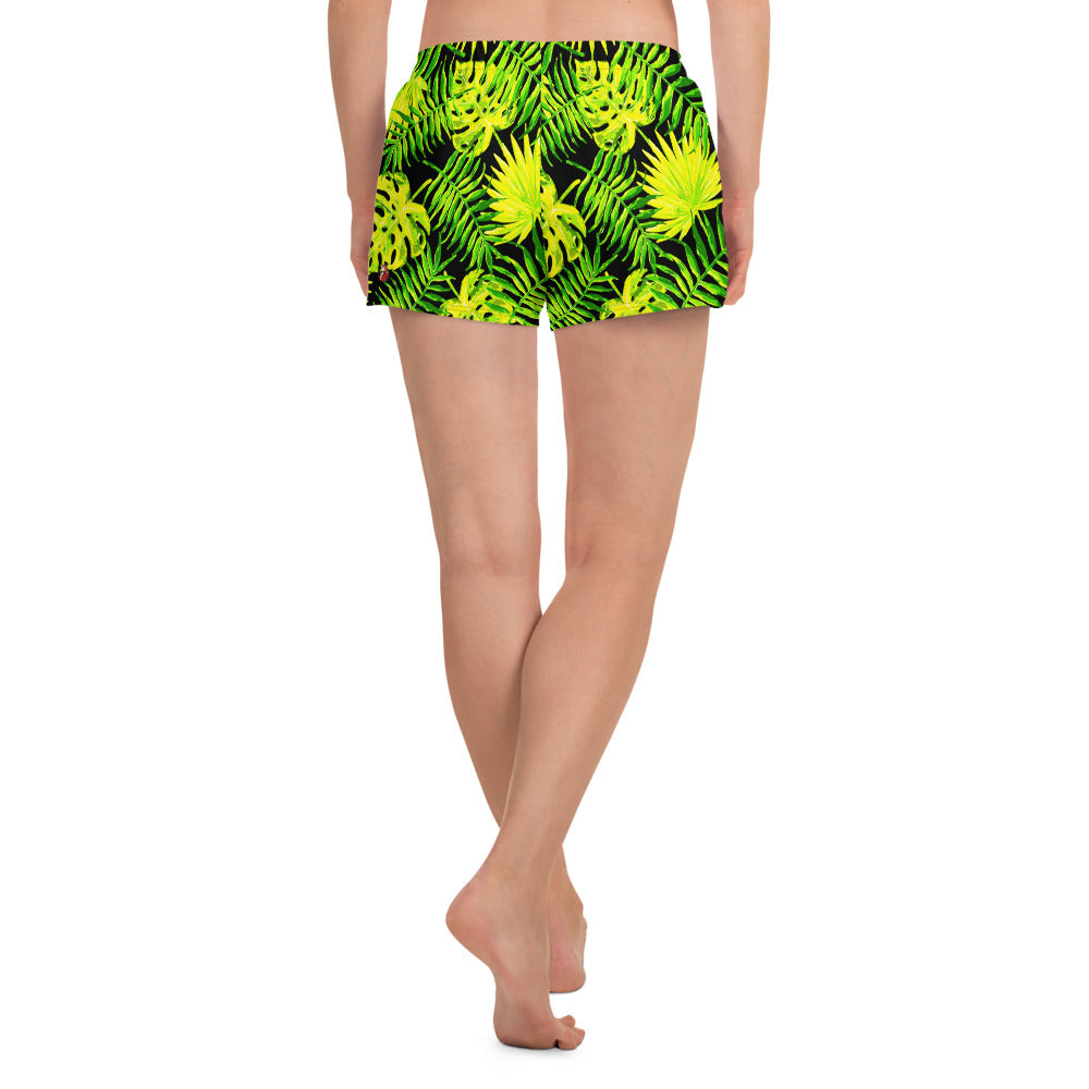 Snooty Fox Art Women’s Athletic Shorts - Lemon Yellow Palm Pattern