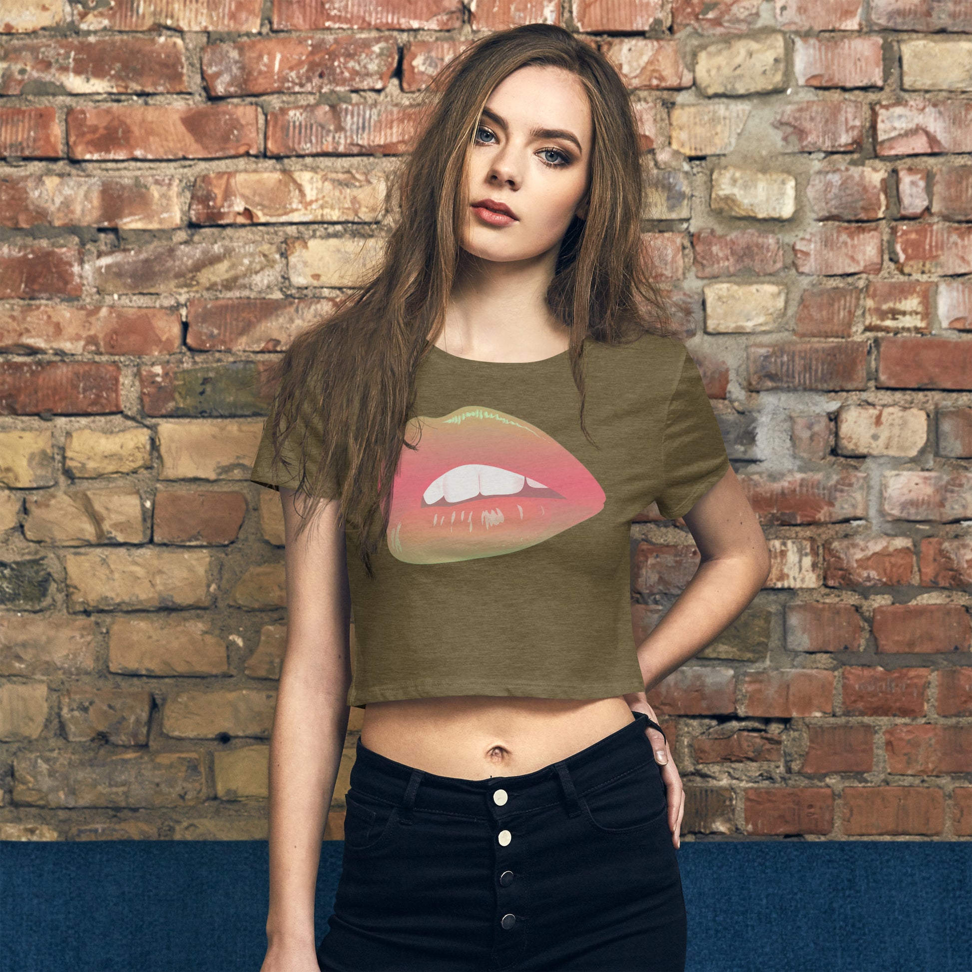 Snooty Fox Art Women’s Crop Tee - Rainbow Lips