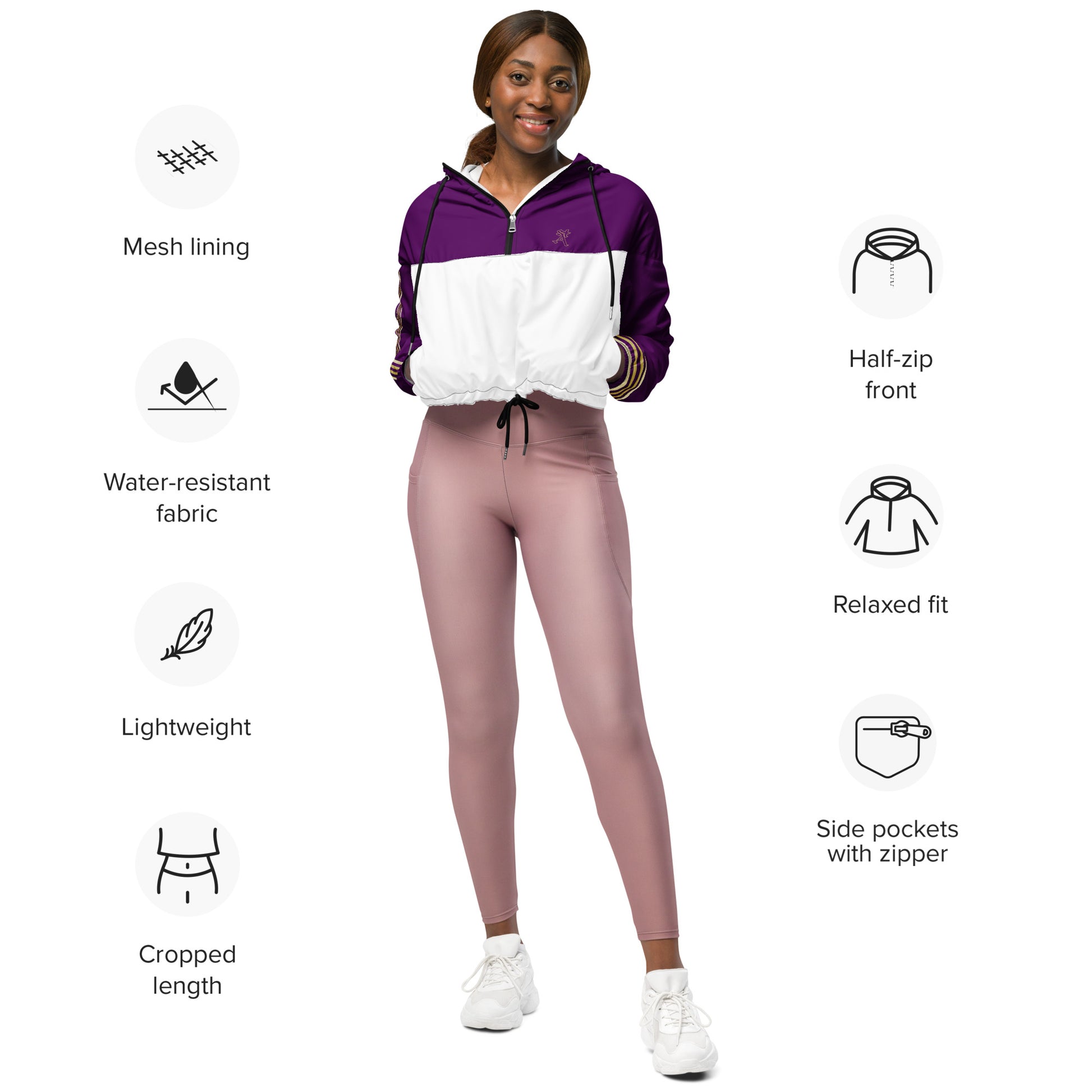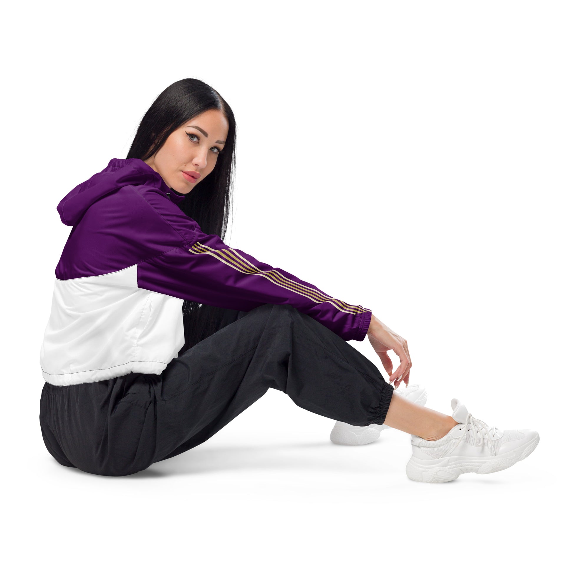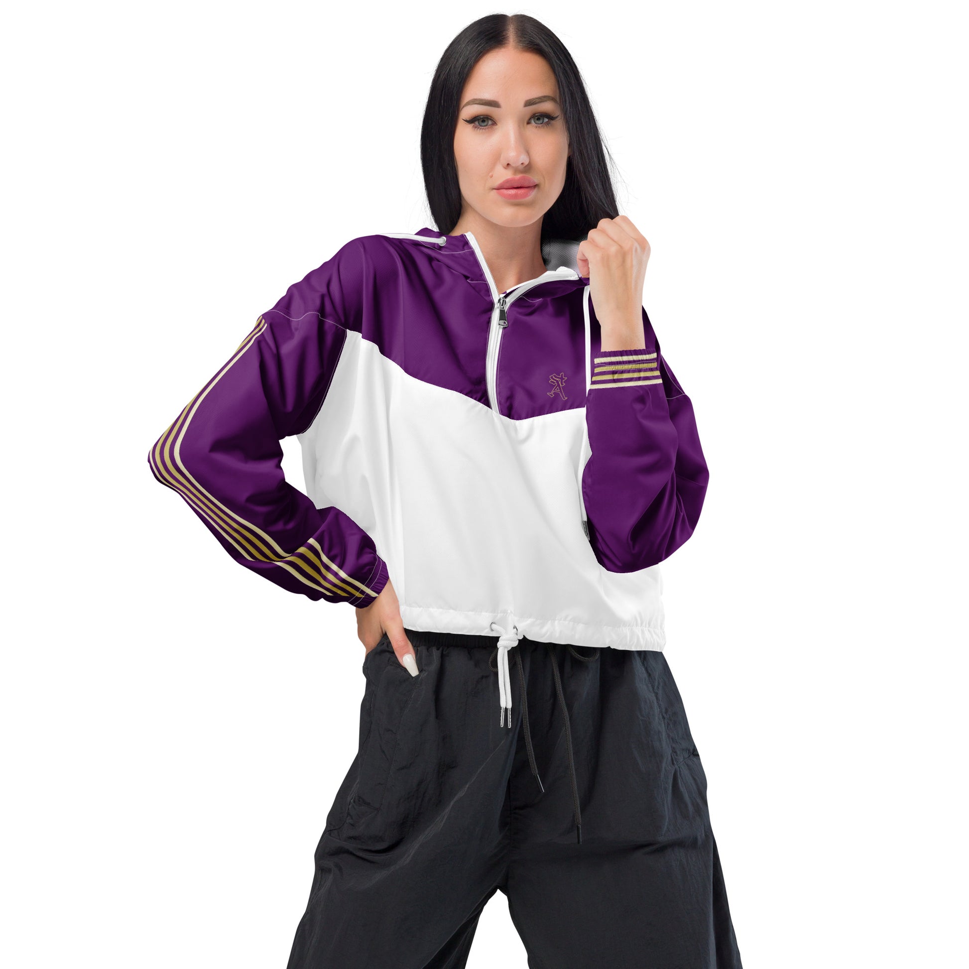 Snooty Fox Art Women’s Cropped Windbreaker - Purple w/ Saints Logo