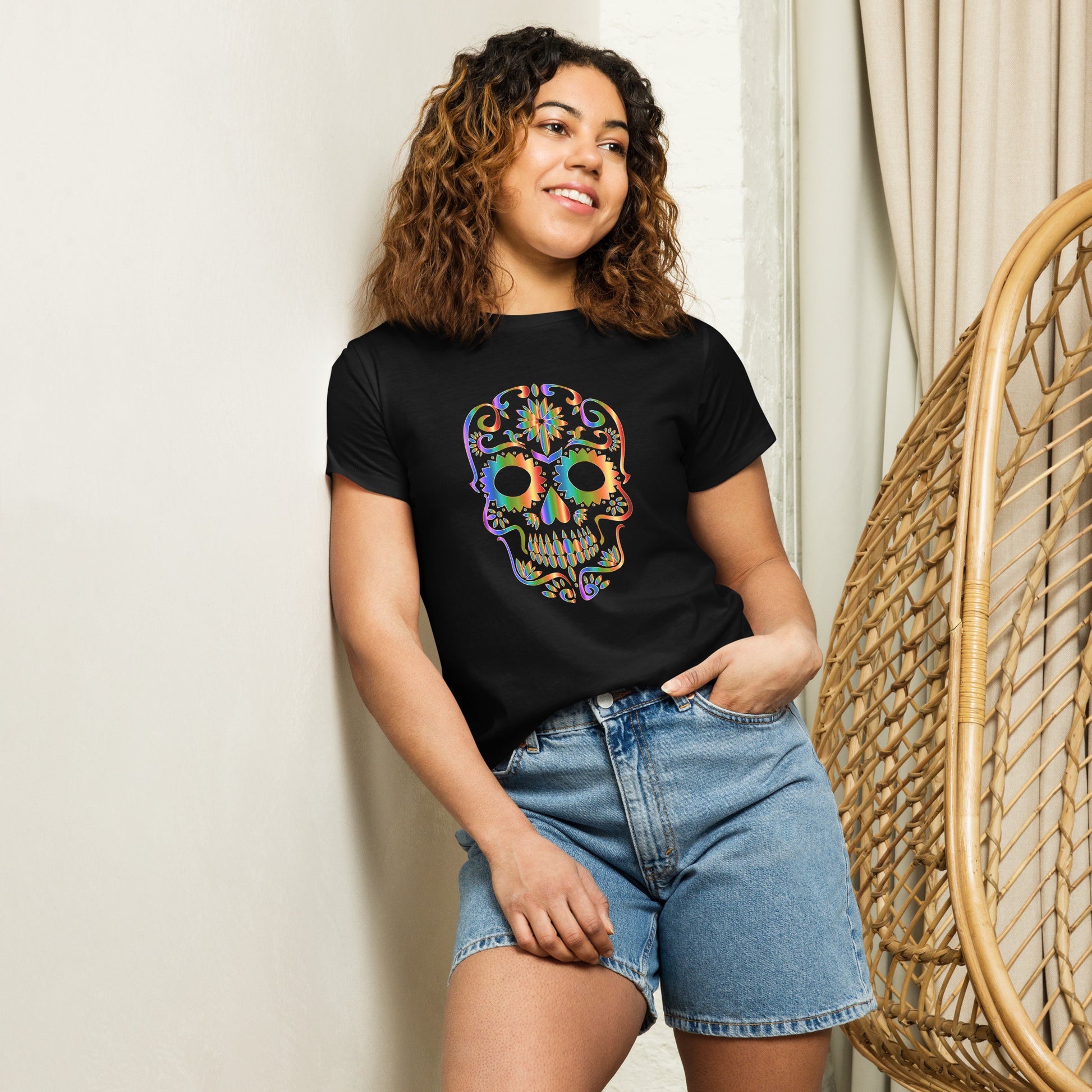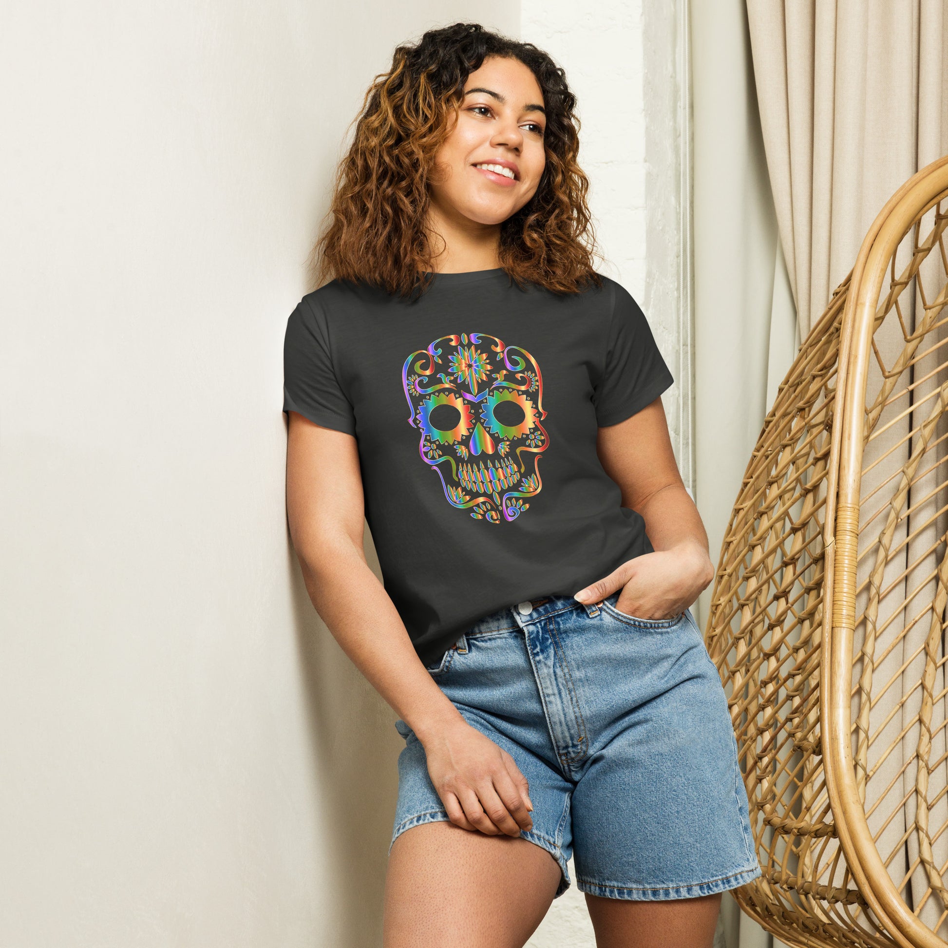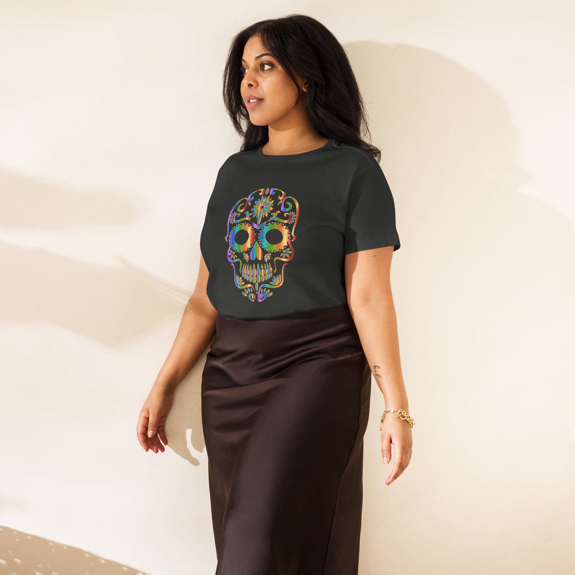 Snooty Fox Art Women’s High-Waisted T-shirt - Day of the Dead Skull