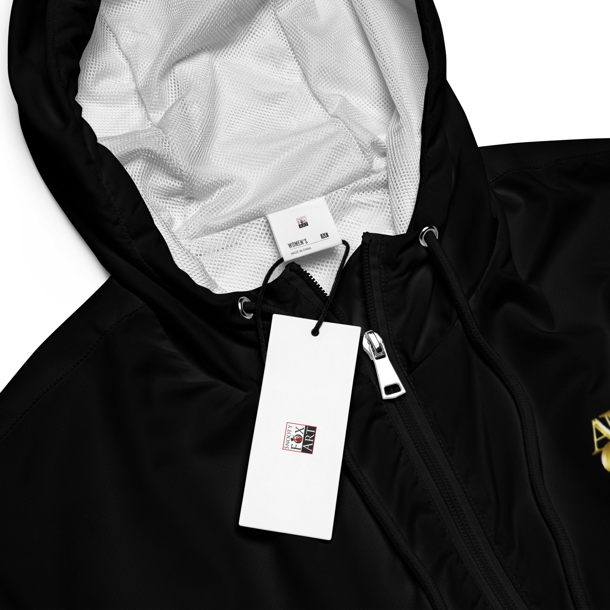 Snooty Fox Art Women's Cropped Windbreaker - Amor - Black on Black